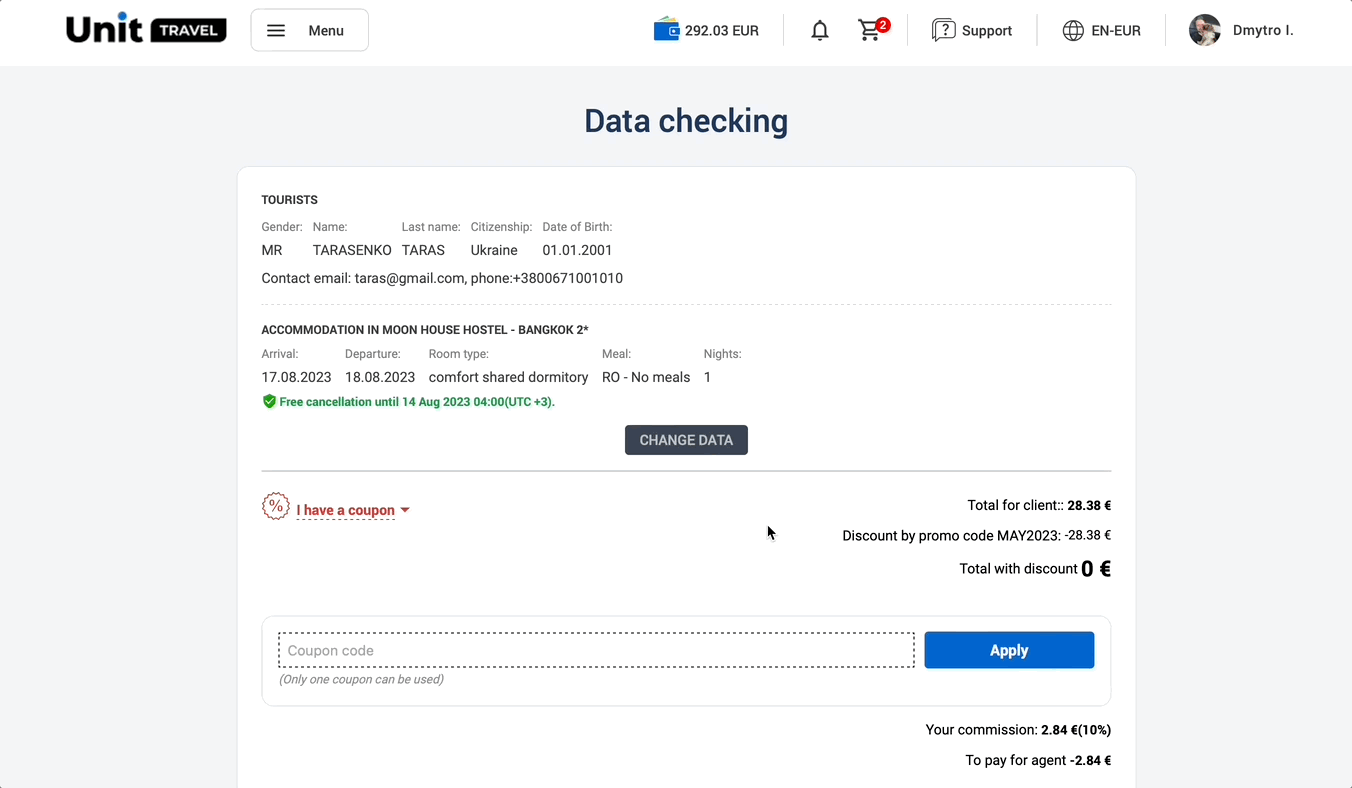 A coupon account is an account that displays special discounts from Unit Travel in the form of coupons for selected products. All coupons are unique and have an expiration date.